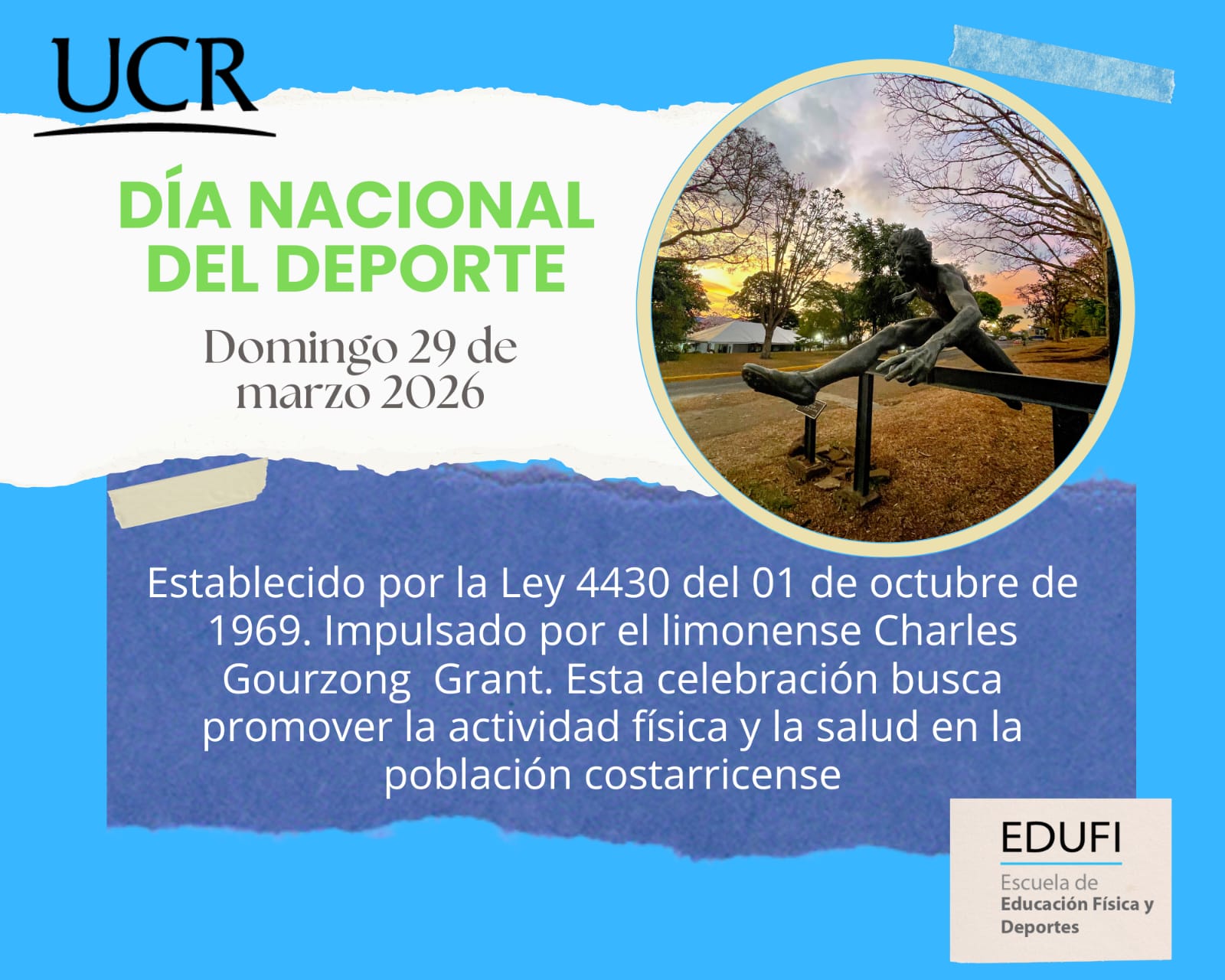 El Día Nacional del Deporte en Costa Rica se celebra el último domingo de marzo de cada año, establecido por la Ley 4430 del 1 de octubre de 1969 e impulsado p
